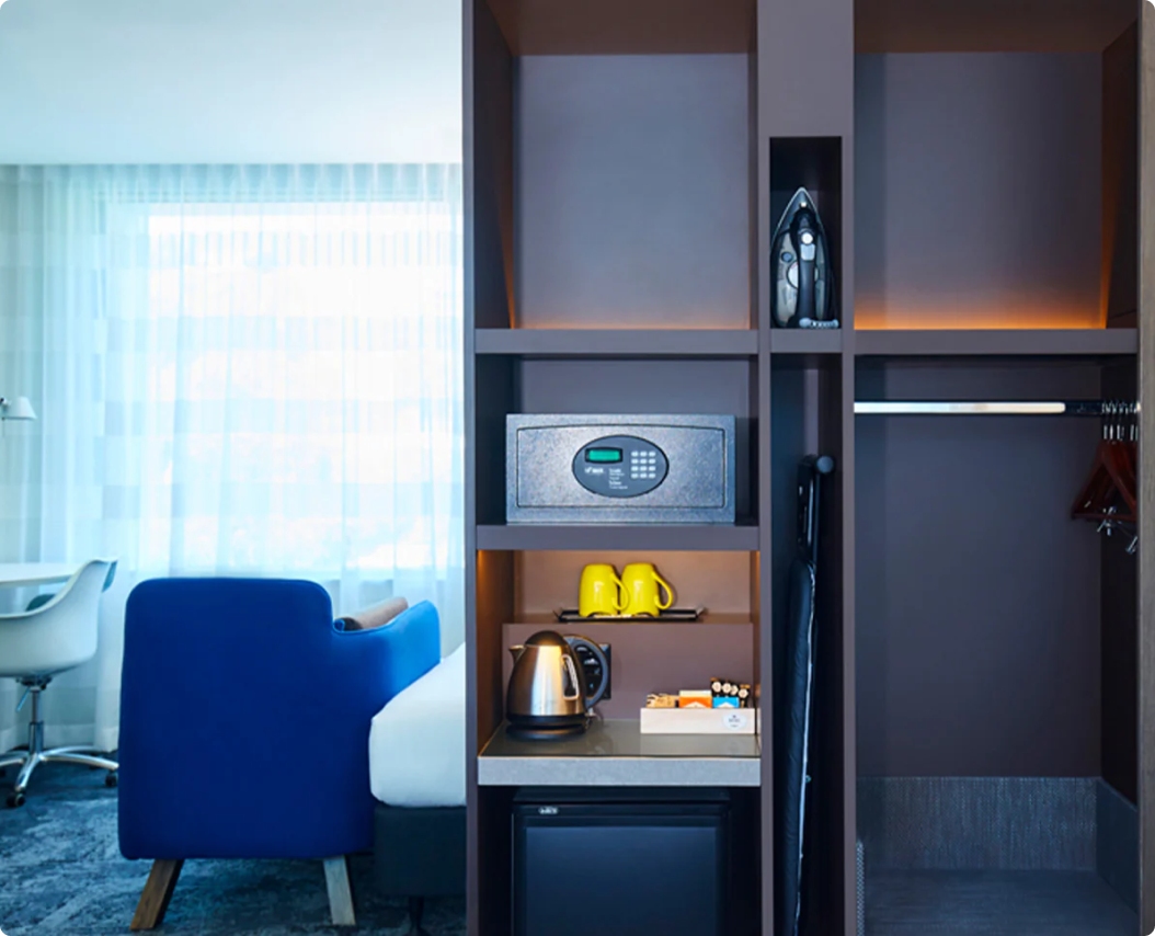 InterContinental Perth City Centre reopened in December 2017 after an extensive refurbishment. Working with local and international Interior Designers, Swisstrade supplied the guest room minibars, safes, small appliances and accessories. From hairdryers to hangers to faux tortoiseshell amenity trays and tissue boxes.