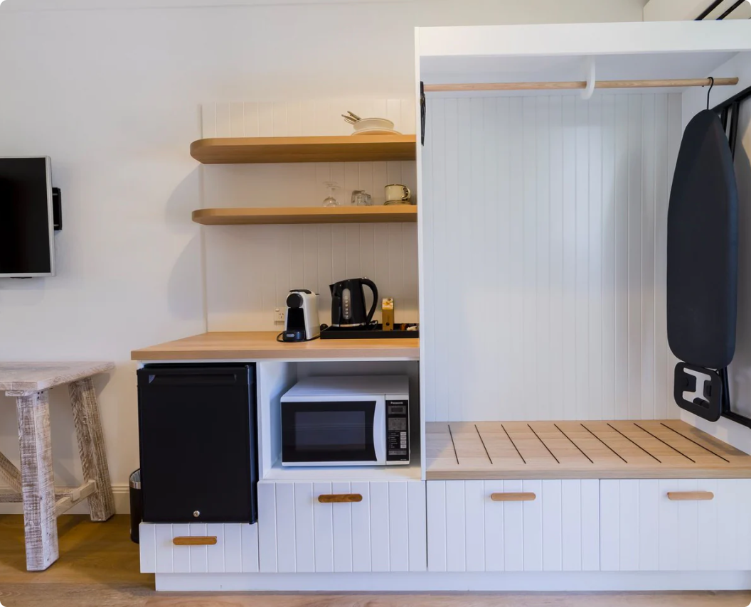 - Premium JVD guest room equipment including wireless charging units, ironing boards, kettles, hair dryers, irons, alarm clocks and room accessories