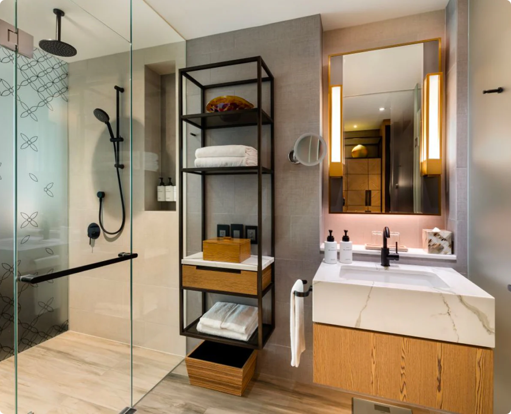 From guestrooms to wellness zones, Swisstrade helped shape the operational ecosystem through the supply and fit-out of thoughtfully selected products, including: