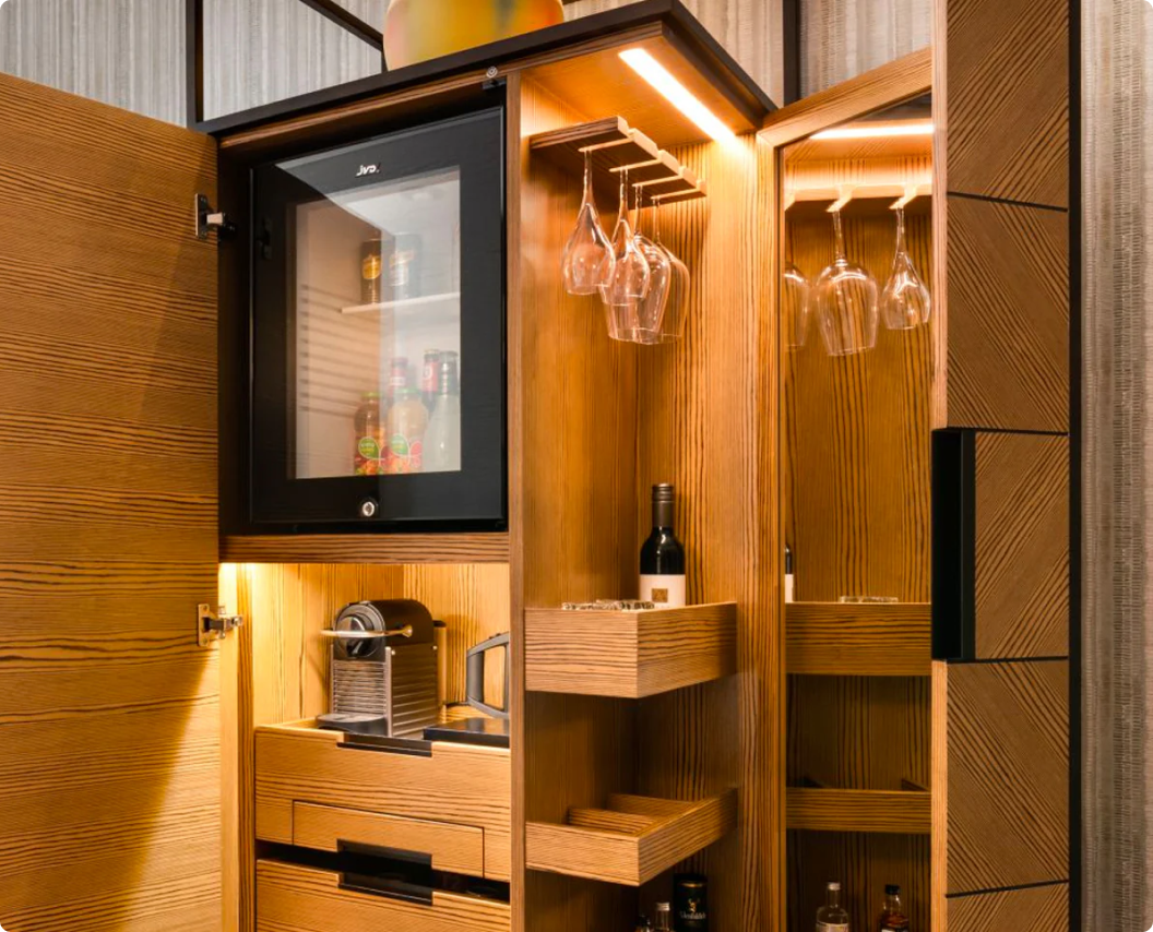 Swisstrade worked closely with the Pro-Invest team to create new touch points and experiences in the guest room through the supply and fit out of various products and amenities, including: