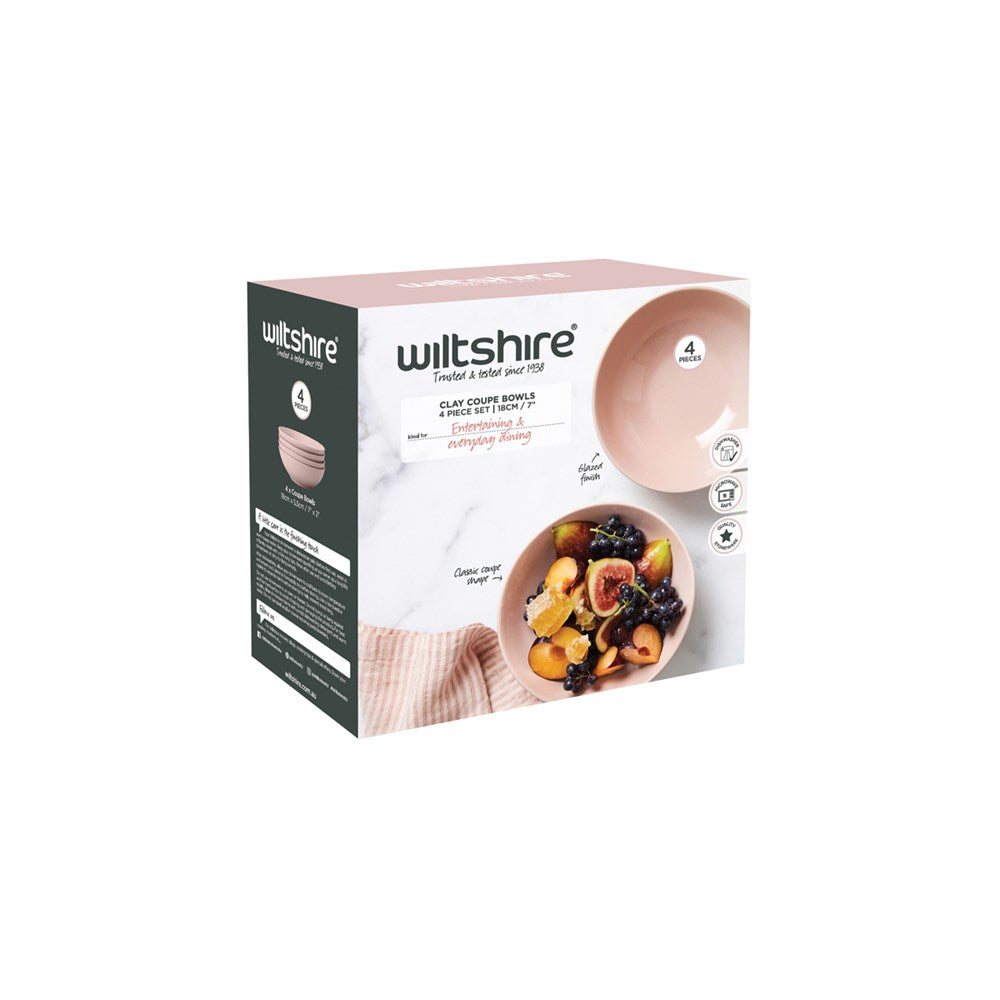 Wiltshire Coupe Bowl CLAY, 180mm, Glazed Stoneware, 4pc Set