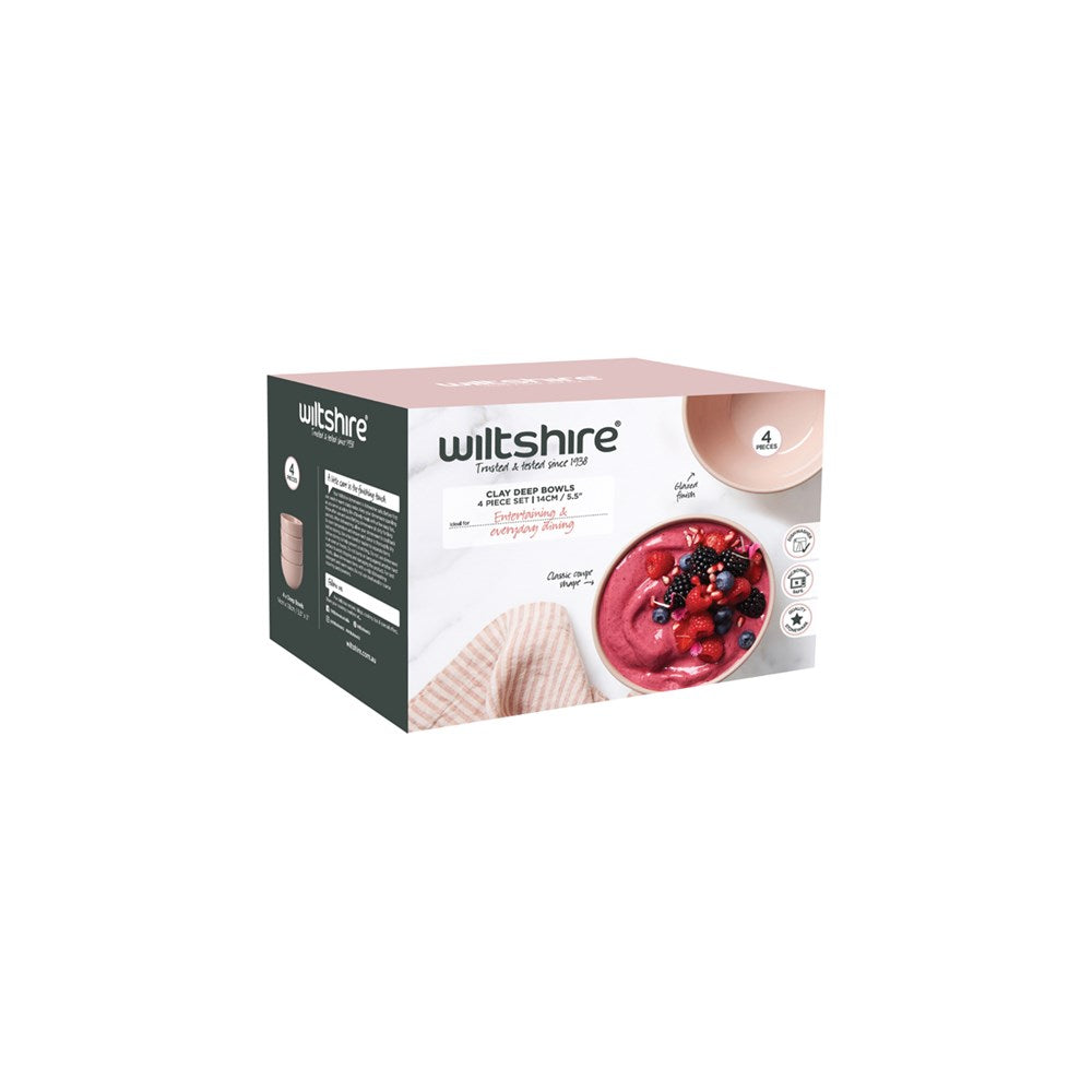 Wiltshire Deep Bowl CLAY, 140mm, Glazed Stoneware, 4pc Set